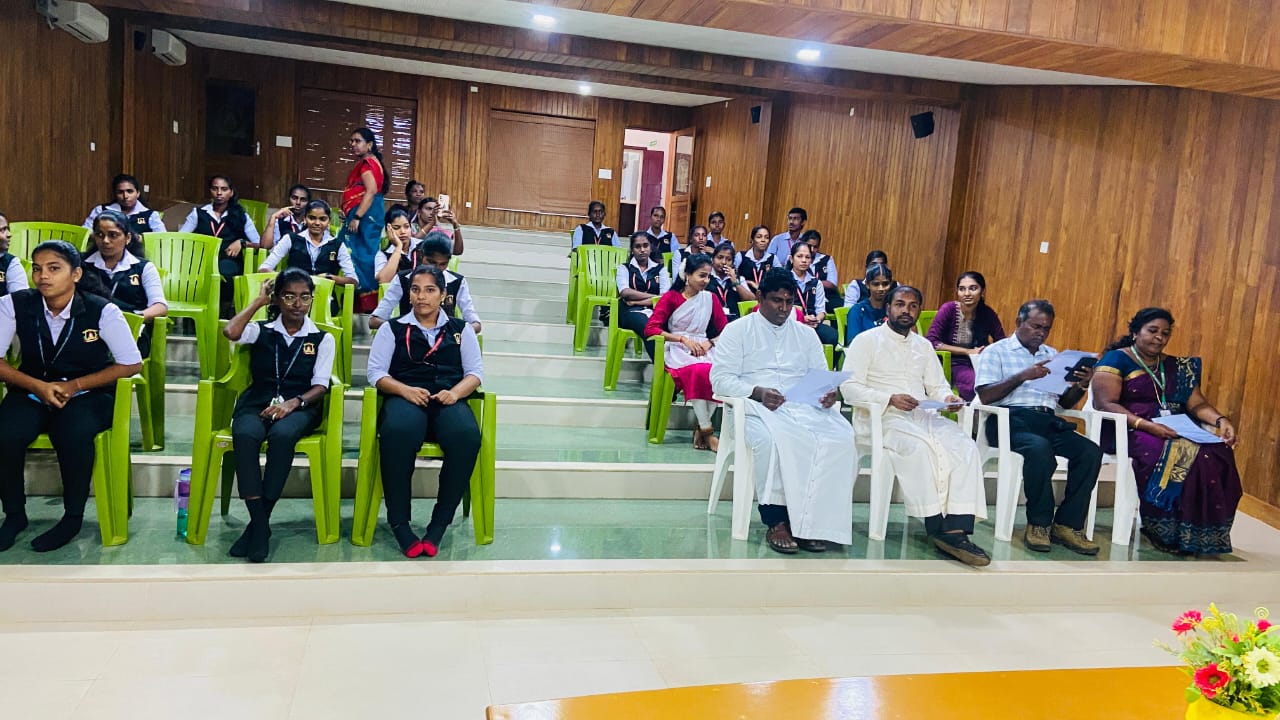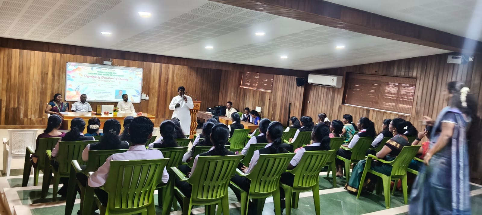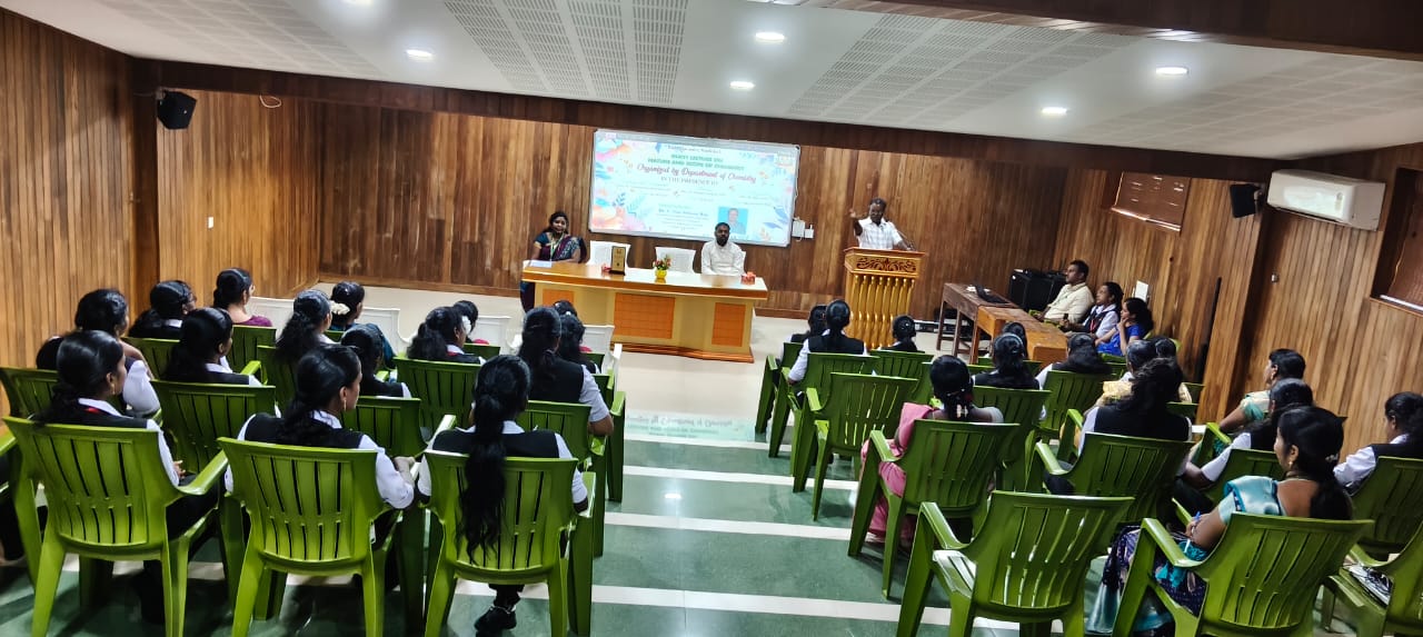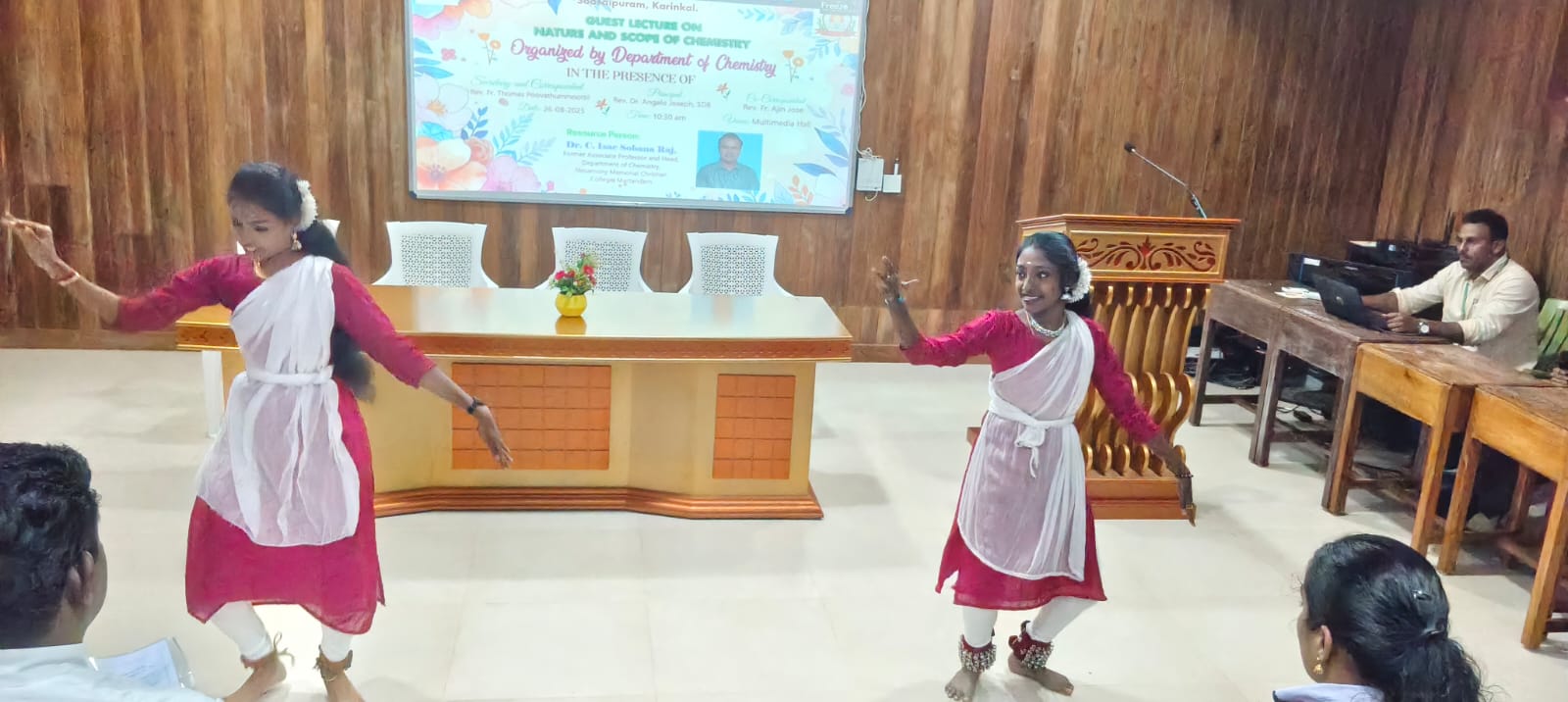 On August 26, 2025, the Department of Chemistry of St. Alphonsa College of Arts and Science organised a guest lecture on the Nature and Scope of Chemistry. The event took place in the Multimedia Hall at 10:30 a.m.. The program began with a prayer song by the Department Choir, led by J.S. Adlin Femi from the third-year B.Sc. Chemistry. This was followed by a welcome dance performed by R.S. Manju Shri and her team. S.R. Abinaya, a second-year B.Sc. Chemistry student, delivered the welcome address. Rev. Fr.Thomas Poovathumoottil, Secretary and Correspondent, gave the presidential address.